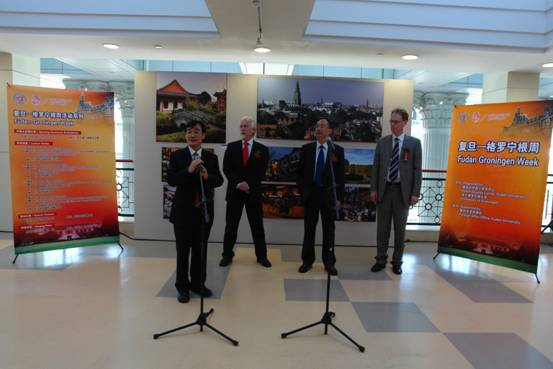 由复旦大学荷兰研究中心联合荷兰格罗宁根大学、复旦大学外事处主办的复旦大学格罗宁根周于2009年10月19日至23日在复旦大学隆重举行。 2009年10月20日下午2时,复旦大学副校长王卫平教授于光华楼会见了荷兰格罗宁根大学校长Poppema教授一行,双方就两校合作等进行了亲切友好的会谈,并在随后举行的复旦大学“格罗宁根周”图片展暨“格罗宁根周”开幕仪式上出席并致辞。一同出席的还有荷兰王国驻上海总领事馆领事汪一力博士、复旦大学荷兰研究中心荷方主任Harst教授等,开幕式由荷兰研究中心中方主任丁纯教授主持。